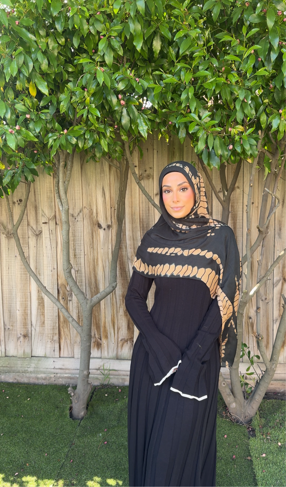 Introducing our VAYL Modal Hijab set in Midnight Caramel. Designed with a finer weave for greater coverage, this set is made from our signature bamboo modal fabric, known for its silky finish and luxurious softness. Lightweight yet opaque, it flows effortlessly with any look and comes with a coordinating undercap for complete coverage and a polished finish.